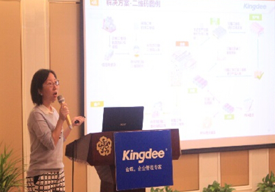 在新的形勢下,支撐企業(yè)管理的核心系統ERP充分利用了互聯網+技術,強化了“連接、智能、創(chuàng)新”三大特性的ERP升級,將重新煥發(fā)青春,從重點關注內部管理利用互聯網+重新武裝。那么,企業(yè)究竟該如何順應互聯網+這個潮流,走向更大的成功呢?接下來金華金辰軟件有限公司的高級售前顧問鄭佳老師并給在座的所有企業(yè)代表詳細地介紹了管理升級中金蝶提出的兩大信息化解決方案,二維碼解決方案和云之家移動應用解決方案。在座的客戶聽完以后都頻頻點頭和拍照。