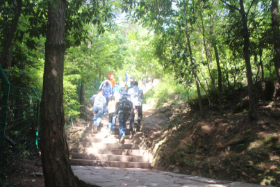 9點15分,大部分客戶都到位了,金辰軟件KIS事業(yè)部負責(zé)人倪小紅集合大家做了活動說明,強調(diào)活動的意義,同時感謝客戶的積極參與,大體介紹了金蝶云之家和移動應(yīng)用,隨著一聲吹號聲,大家爭先恐后地向尖峰山山頂進發(fā),每人手上綁著統(tǒng)一的紅絲帶在一路上顯得格外耀眼,工作人員舉著迎風(fēng)飄揚的金蝶標志旗告訴大家是金蝶軟件在舉辦活動,很多爬山著豎著大拇指說金蝶軟件真不錯!,活動非常有意義!