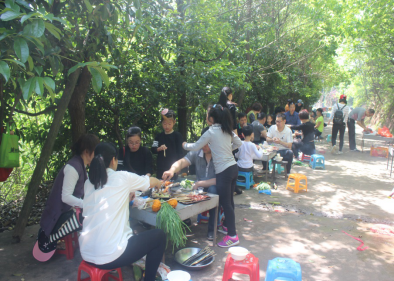 中午11時左右,下山的客戶朋友稍作休息后就迫不及待來到燒烤場,準備享受美味的食物。