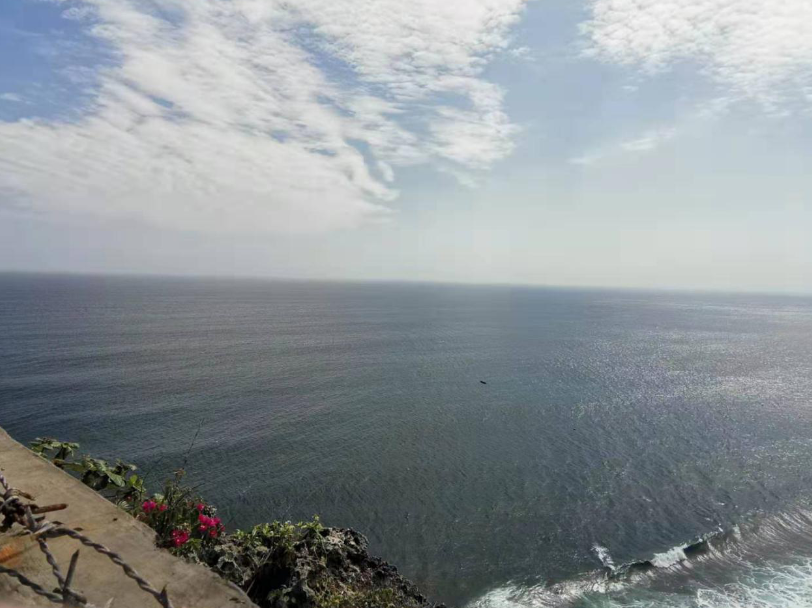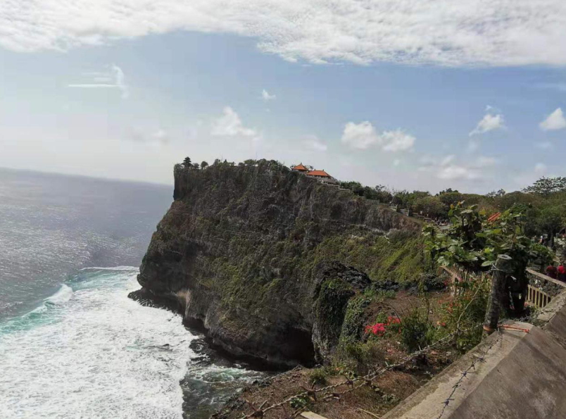 午餐后,去了烏魯瓦圖斷崖(情人崖)。這里海浪拍打著懸崖,海鳥在空中翱翔,景色非常迷人。與海神廟岸邊公園相似,情人崖上也遍布各種帶有宗教色彩和巴厘島特色的石雕,這些雕塑造型圓潤,線條卻無比繁復(fù),足可見出工匠的巧手妙思。更有熱帶風(fēng)情的是,不少神像的耳邊還插著一朵當(dāng)?shù)刈疃嘁姷哪厅S色雞蛋花,巴厘人的細(xì)膩多情可見一斑。在情人崖有許多猴子,特別猖獗,會搶東西,除非用吃的或錢引誘,要不沒法取回。