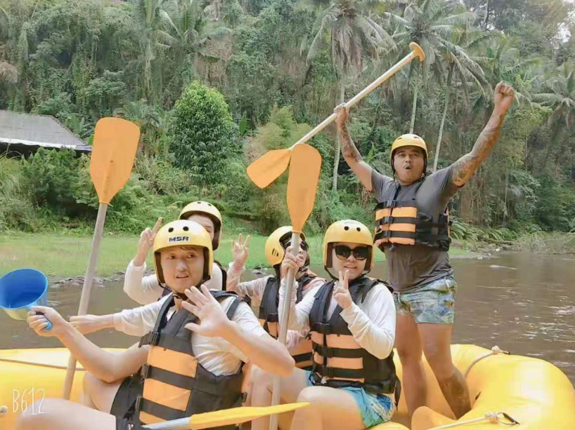 據(jù)說巴厘島自費(fèi)水上活動首推的是著名漂流阿勇河,阿勇河長11公里,流經(jīng)上有22處急流點(diǎn),兩岸均是原始森林的變換景象。水比較小,刺激程度一般,但可以欣賞到絕佳的熱帶雨林風(fēng)景和瀑布。我們的小伙伴這水仗打的那時相當(dāng)過癮~~